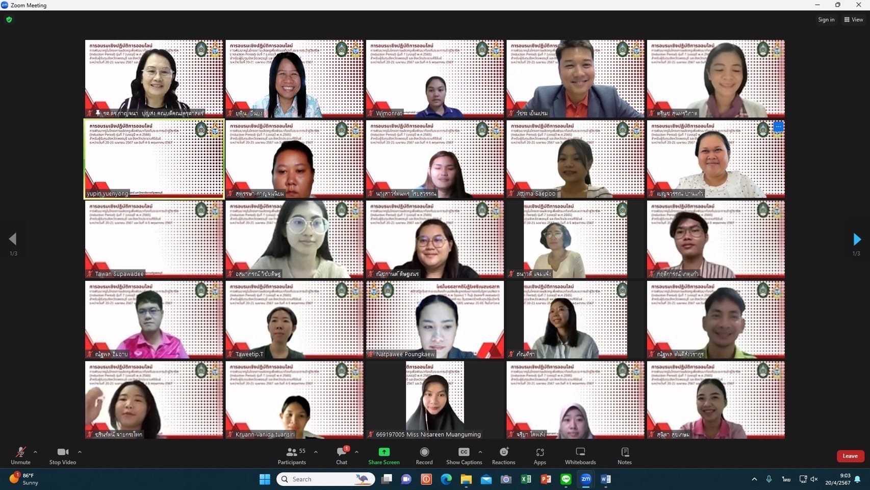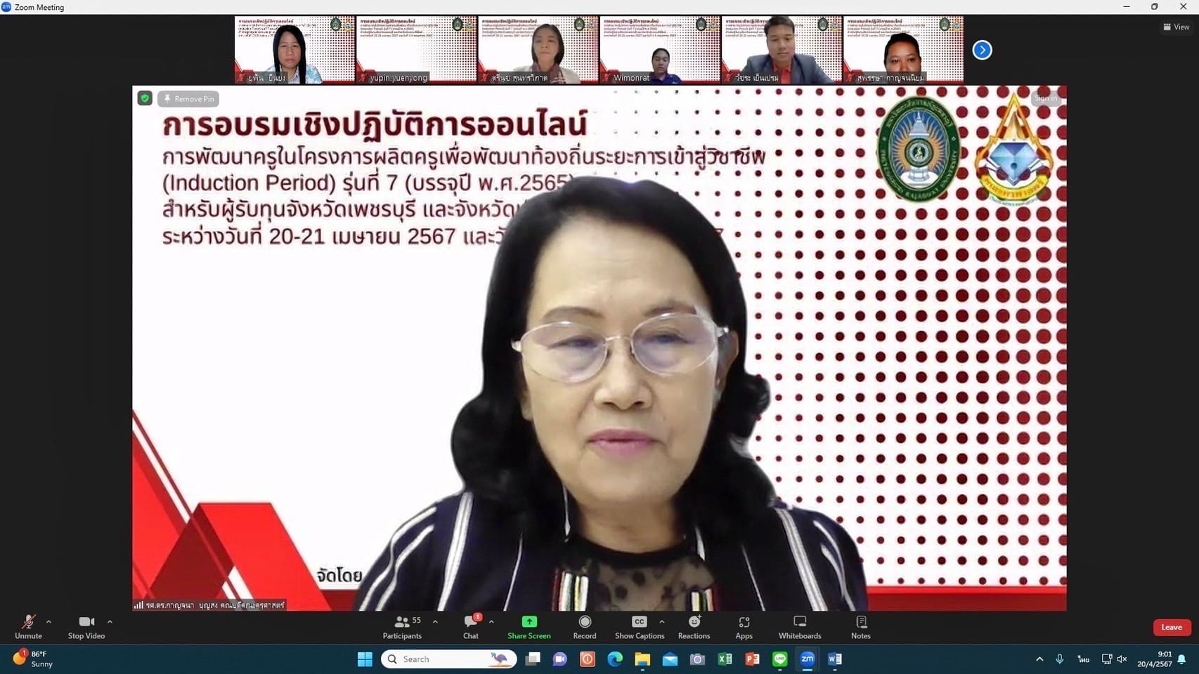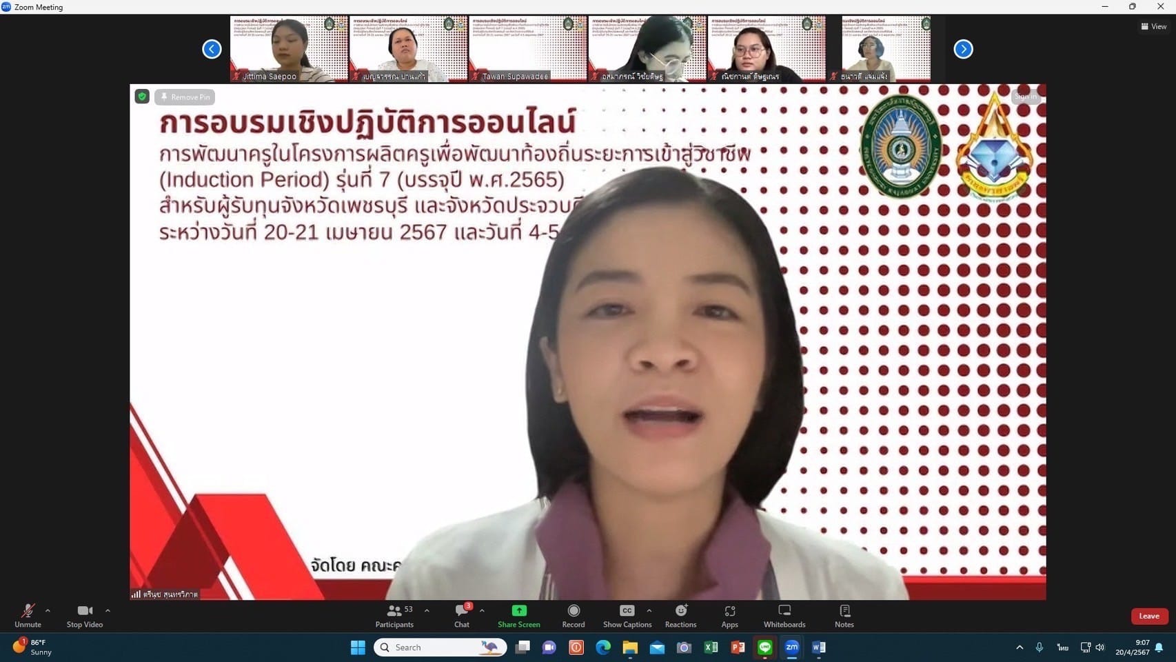 รองศาสตราจารย์ ดร. กาญจนา บุญส่ง คณบดีคณะครุศาสตร์ เป็นประธานเปิดโครงการอบรมเชิงปฏิบัติการ “การพัฒนาครูในโครงการผลิตครูเพื่อพัฒนาท้องถิ่น ระยะการเข้าสู่วิชาชีพ (Induction Period) รุ่น 7 (ปีบรรจุ พ.ศ. 2565) ในจังหวัดเพชรบุรีและประจวบคีรีขันธ์ ผ่านระบบออนไลน์ ด้วยโปรแกรม (Zoom) ระหว่างวันที่ 20-21 เมษายน 2567 และวันที่ 4-5 พฤษภาคม 2567 โดยมีกลุ่มเป้าหมายได้แก่ ครูผู้รับทุนในจังหวัดเพชรบุรีและประจวบคีรีขันธ์ จำนวน 28 คน วิทยากรบรรยายได้แก่ อาจารย์ ดร.ยุพิน ยืนยง ผู้ช่วยศาสตราจารย์ ดร.ปัญญา ทองนิล อาจารย์ ดร.พีชาณิกา เพชรสังข์ อาจารย์วัชระ เย็นเปรม และอาจารย์ตรีนุช สุนทรวิภาค