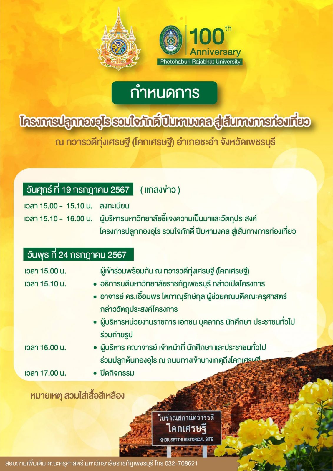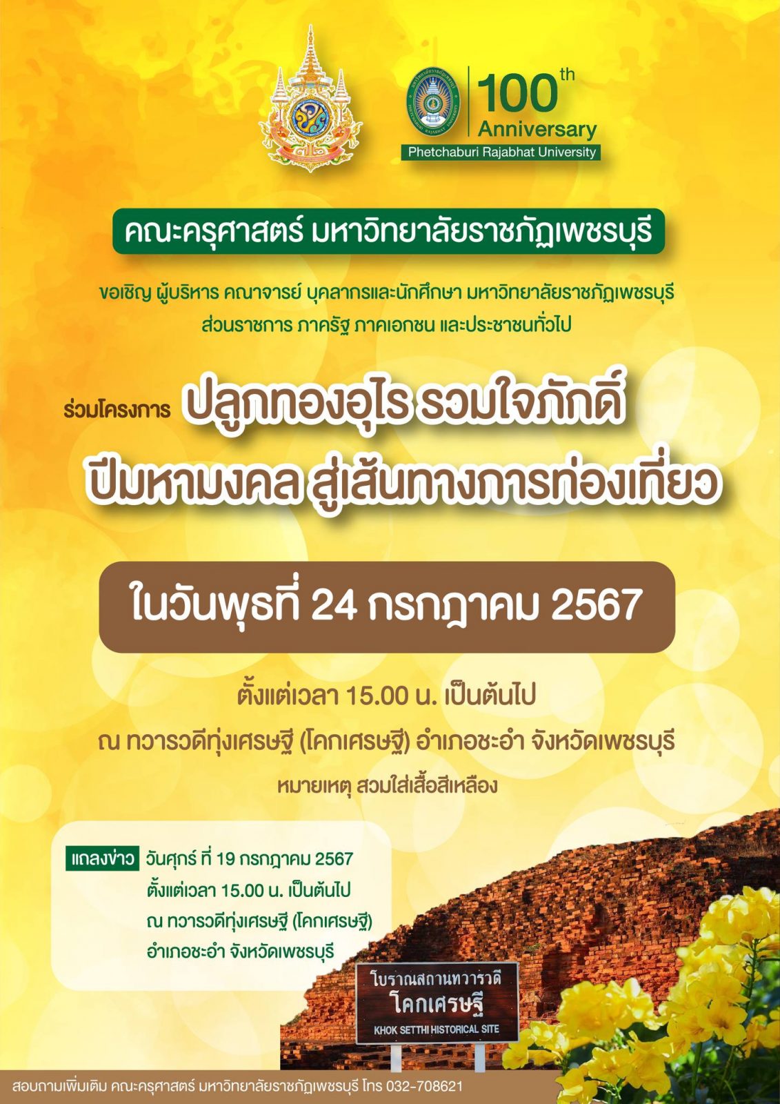 ขอเชิญร่วมโครงการ “ปลูกทองอุไร รวมใจภักดิ์ ปีมหามงคล สู่เส้นทางการท่องเที่ยว” 2 กรกฎาคม 20243 กรกฎาคม 2024piyanunข่าวประชาสัมพันธ์, ข่าวสำหรับบุคลากร, ข่าวสื่อสารองค์กร จำนวนผู้ชม : 25 คณะครุศาสตร์ มหาวิทยาลัยราชภัฏเพชรบุรี ขอเชิญ ผู้บริหาร คณาจารย์ บุคลากร และนักศึกษามหาวิทยาลัยราชภัฏเพชรบุรี ส่วนราชการ ภาครัฐ ภาคเอกชน และประชาชนทั่วไป ร่วมโครงการ “ปลูกทองอุไร รวมใจภักดิ์ ปีมหามงคล สู่เส้นทางการท่องเที่ยว” ในวันพุธที่ 24 กรกฎาคม 2567 ตั้งแต่เวลา 15.00 น. เป็นต้นไป ณ ทวารวดีทุ่งเศรษฐี (โคกเศรษฐี) อำเภอชะอำ จังหวัดเพชรบุรี #มหาวิทยาลัยราชภัฏเพชรบุรี#ราชภัฏเพชรบุรีกับการพัฒนาระบบการบริหารองค์กรที่มีประสิทธิภาพ#100ปีราชภัฏเพชรบุรี Facebook iconFacebookTwitter iconTwitterLINE iconLine