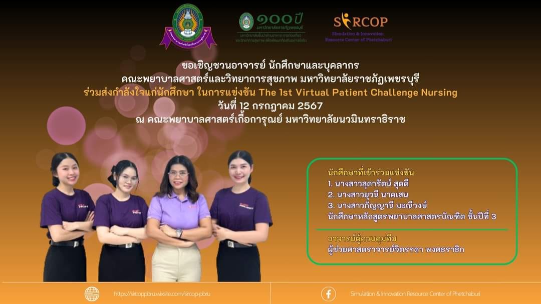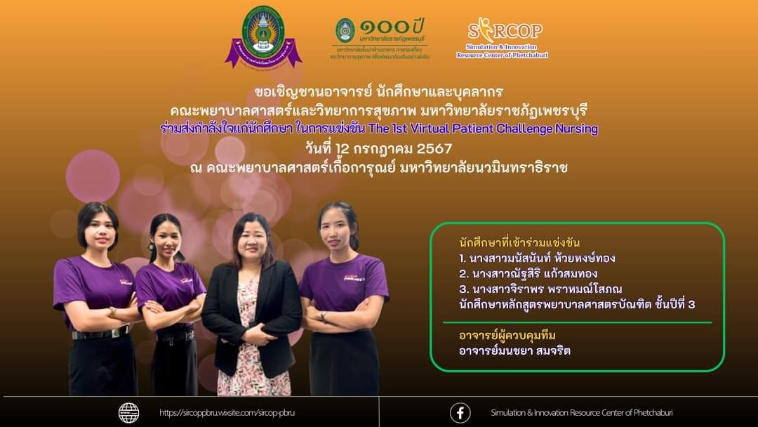 คณะพยาบาลศาสตร์และวิทยาการสุขภาพ เข้าร่วมโครงการแข่งขัน “The 1st Virtual Patient Challenge Nursing” ณ คณะพยาบาลศาสตร์เกื้อการุณย์ 15 กรกฎาคม 202415 กรกฎาคม 2024piyanunข่าวประชาสัมพันธ์, ข่าวสำหรับบุคลากร, ข่าวสื่อสารองค์กร จำนวนผู้ชม : 26 นักศึกษาสาขาพยาบาลศาสตร์ พร้อมด้วยอาจารย์ที่ปรึกษา คณะพยาบาลศาสตร์และวิทยาการสุขภาพ เข้าร่วมโครงการแข่งขัน "The 1st Virtual Patient Challenge Nursing" ณ คณะพยาบาลศาสตร์เกื้อการุณย์ นักศึกษาสาขาพยาบาลศาสตร์ พร้อมด้วยอาจารย์ที่ปรึกษา คณะพยาบาลศาสตร์และวิทยาการสุขภาพ เข้าร่วมโครงการแข่งขัน “The 1st Virtual Patient Challenge Nursing” ณ คณะพยาบาลศาสตร์เกื้อการุณย์ มหาวิทยาลัยนวมินทราธิราช ระหว่างวันที่ 11 – 12 กรกฎาคม 2567โดยมีผู้เข้าร่วมแข่งขันรอบคัดเลือกจำนวน 49 ทีมโดยคณะพยาบาลศาสตร์และวิทยาการสุขภาพส่งเข้าแข่งขัน 4 ทีม และขอแสดงความยินกับทีมที่ได้รับรางวัลทั้ง 2 รางวัล ได้แก่รางวัลรองชนะเลิศอันดับ 1– ณัฐสิริ แก้วสมทอง– จิราพร พราหมณ์โสภณ– มนัสนันท์ ห้วยหงษ์ทอง– อาจารย์มนชยา สมจริต (อาจารย์ที่ปรึกษา)รางวัลรองชนะเลิศลำดับ 2– นางสาวยุวนี นาคเสน– นางสาวสุดารัตน์ สุดดี– นางสาวกัญญานี มะณีวงษ์– ผู้ช่วยศาสตราจารย์ จิตรรดา พงศธราธิก (อาจารย์ที่ปรึกษา) #มหาวิทยาลัยราชภัฏเพชรบุรี#ราชภัฏเพชรบุรีกับการพัฒนาระบบการบริหารองค์กรที่มีประสิทธิภาพ#100ปีราชภัฏเพชรบุรี Facebook iconFacebookTwitter iconTwitterLINE iconLine