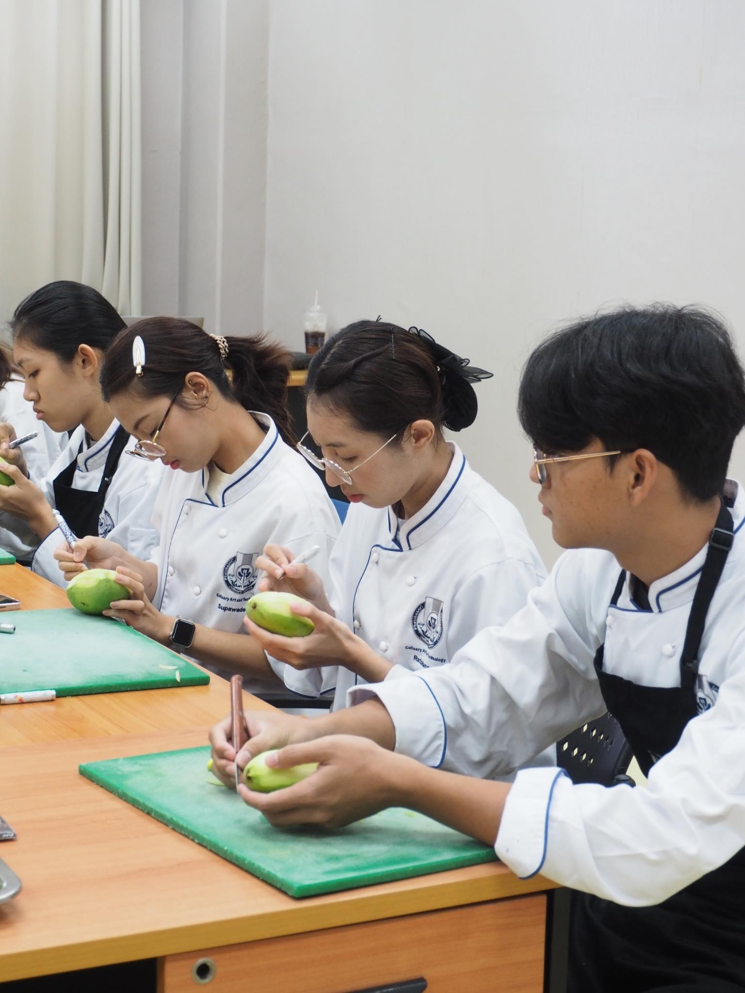นักศึกษาสาขาวิชาเทคโนโลยีและศิลปะการประกอบอาหาร เข้าร่วมการอบรมเชิงปฏิบัติการเตรียมความพร้อมก่อนการฝึกประสบการณ์วิชาชีพ 2 สิงหาคม 20242 สิงหาคม 2024piyanunข่าวประชาสัมพันธ์, ข่าวสำหรับบุคลากร, ข่าวสื่อสารองค์กร จำนวนผู้ชม : 3 นักศึกษาสาขาวิชาเทคโนโลยีและศิลปะการประกอบอาหาร เข้าร่วมการอบรมเชิงปฏิบัติการเตรียมความพร้อมก่อนการฝึกประสบการณ์วิชาชีพ นักศึกษาชั้นปีที่ 2 สาขาวิชาเทคโนโลยีและศิลปะการประกอบอาหาร คณะวิทยาศาสตร์และเทคโนโลยี เข้ารับการอบรมหลักสูตร การเตรียมความพร้อมก่อนการฝึกประสบการณ์วิชาชีพด้านอาหาร (Upskills) ระหว่างวันที่ 27-28 กรกฎาคม 2567 ณ โรงเรียนการอาหารนานาชาติเพชรบุรี คณะวิทยาศาสตร์และเทคโนโลยี มหาวิทยาลัยราชภัฏเพชรบุรี โดยได้รับเกียรติจากเชฟประชัน วงศ์อุทัยพันธุ์ ที่มาให้ความรู้ในการเลือกใช้วัตถุดิบอาหาร เรียนรู้ขั้นตอนและเทคนิคการประกอบอาหารชาววัง และเรียนรู้การแกะสลัก #มหาวิทยาลัยราชภัฏเพชรบุรี#ราชภัฏเพชรบุรีกับการพัฒนาระบบการบริหารองค์กรที่มีประสิทธิภาพ#100ปีราชภัฏเพชรบุรี Facebook iconFacebookTwitter iconTwitterLINE iconLine