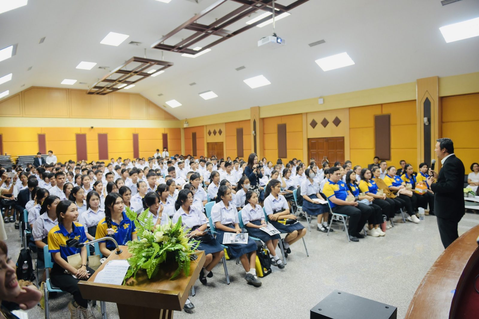 เปิดบ้านแนะแนวการศึกษาให้แก่คณะครูและนักเรียนโรงเรียนสามร้อยยอดวิทยาคม 5 กันยายน 20245 กันยายน 2024piyanunกิจกรรมนักศึกษา, ข่าวงานบริหารงานบุคคล, ข่าวประชาสัมพันธ์, ข่าวสื่อสารองค์กร จำนวนผู้ชม : 12 มหาวิทยาลัยราชภัฏเพชรบุรี เปิดบ้านแนะแนวการศึกษาให้แก่คณะครูและนักเรียนโรงเรียนสามร้อยยอดวิทยาคม วันที่ 4 กันยายน 2567 ณ ห้องประชุมชั้น 1 คณะวิทยาการจัดการ มหาวิทยาลัยราชภัฏเพชบุรี ผู้ช่วยศาสตราจารย์ ดร.พัชรินทร์ สุริยวงค์ รองอธิการบดีมหาวิทยาลัยราชภัฏเพชรบุรี พร้อมด้วยคณบดี คณาจารย์และบุคลากรมหาวิทยาลัยราชภัฏเพชรบุรี ให้การต้อนรับคณะผู้บริหาร คณะครูและนักเรียนโรงเรียนสามร้อยยอดวิทยาคม อำเภอสามร้อยยอด จังหวัดประจวบคคีรีขันธ์ ในโอกาสเดินทางเข้ารับฟังการแนะแนวการศึกษาจากคณาจารย์และผู้แทนนักศึกษาแต่ละคณะ เพื่อนำไปใช้เป็นข้อมูลในการตัดสินใจเข้าศึกษาต่อในระดับอุดมศึกษา นอกจากนักเรียนจะได้รับฟังการจัดการเรียนการสอนของมหาวิทยาลัยราชภัฏเพชรบุรีทั้ง 8 คณะ และ 1 วิทยาลัยแล้ว ยังได้รับฟังข้อมูลระบบคลังเครดิต (Credit Bank) ที่เป็นการเรียนแบบสะสมหน่วยกิตด้วย #มหาวิทยาลัยราชภัฏเพชรบุรี#สำนักส่งเสริมวิชาการและงานทะเบียนมหาวิทยาลัยราชภัฏเพชรบุรี#ราชภัฏเพชรบุรีกับการพัฒนาระบบการบริหารองค์กรที่มีประสิทธิภาพ#100ปีราชภัฏเพชรบุรี Facebook iconFacebookTwitter iconTwitterLINE iconLine