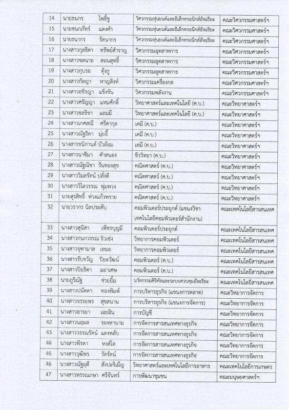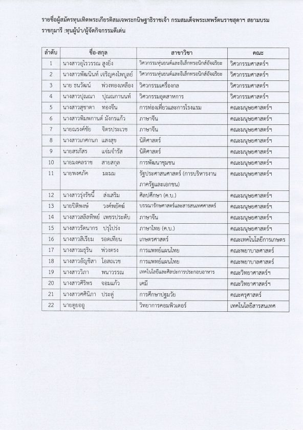 เรื่อง ประกาศรายชื่อนักศึกษาที่มีสิทธิ์สอบคัดเลือกเข้ารับทุนการศึกษา