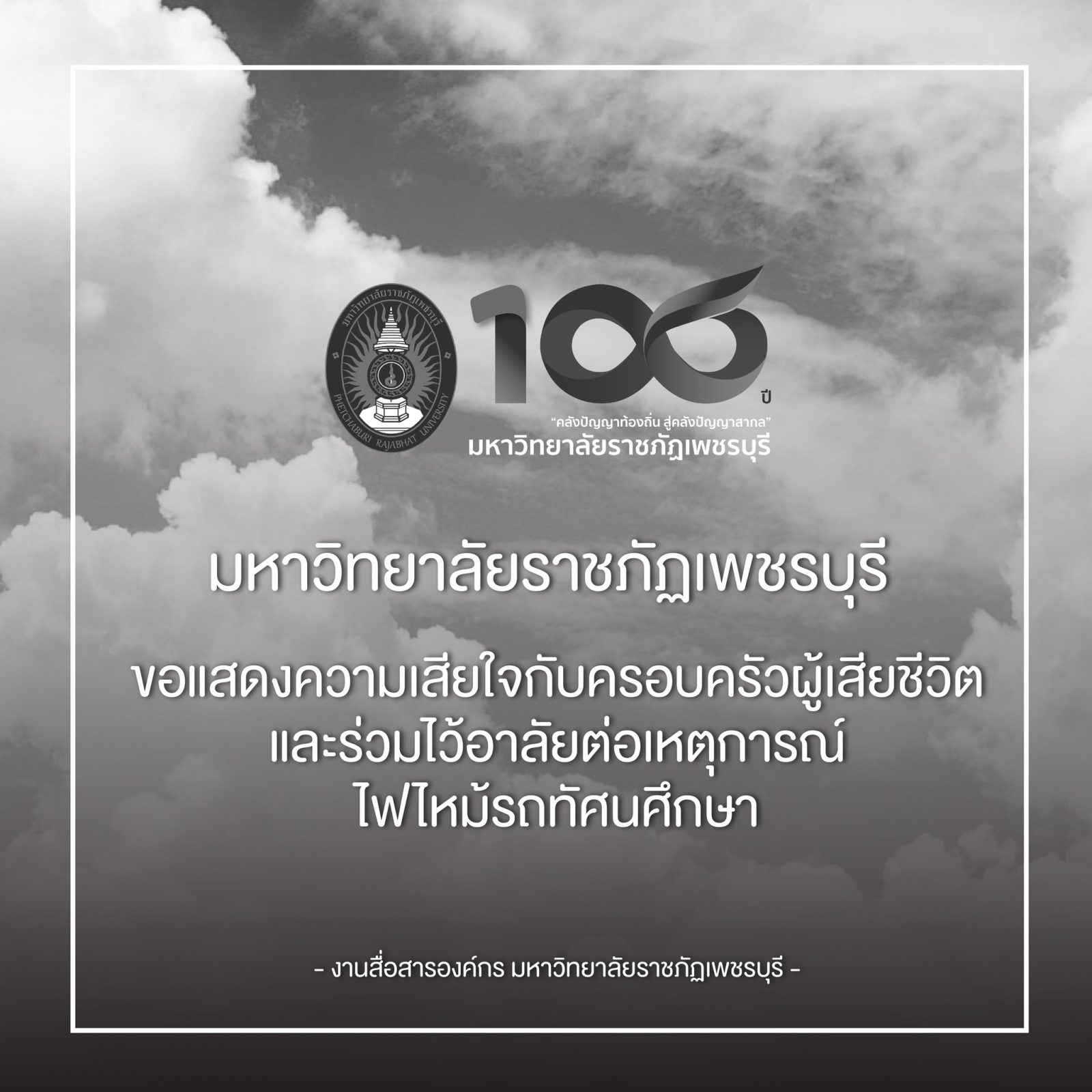 มหาวิทยาลัยราชภัฏเพชรบุรี ขอแสดงความเสียใจกับครอบครัวผู้เสียชีวิตและร่วมไว้อาลัยต่อเหตุการณ์ไฟไหม้รถบัสทัศนศึกษา 2 ตุลาคม 202416 ตุลาคม 2024piyanunข่าวประชาสัมพันธ์, ข่าวสำหรับนักศึกษา, ข่าวสำหรับบุคลากร, ข่าวสื่อสารองค์กร จำนวนผู้ชม : 30 มหาวิทยาลัยราชภัฏเพชรบุรี ขอแสดงความเสียใจกับครอบครัวผู้เสียชีวิตและร่วมไว้อาลัยต่อเหตุการณ์ไฟไหม้รถบัสทัศนศึกษา Facebook iconFacebookTwitter iconTwitterLINE iconLine