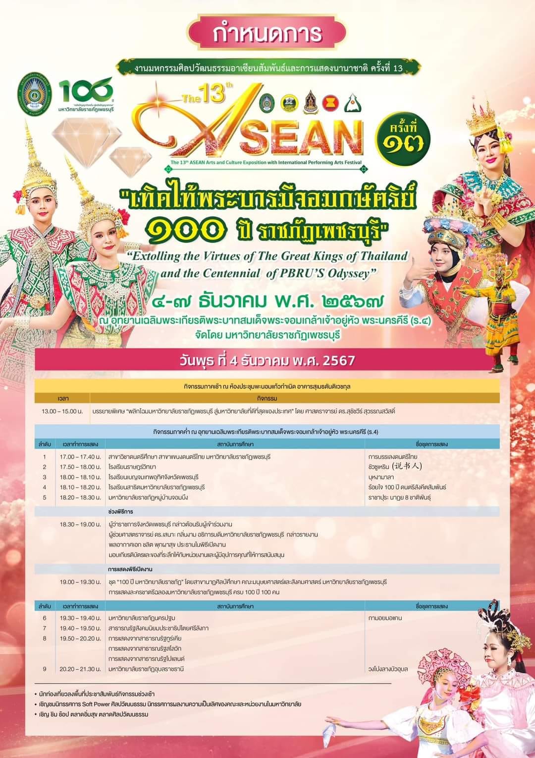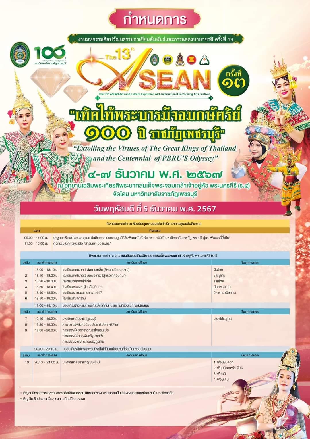 มหกรรมศิลปวัฒนธรรมอาเซียนสัมพันธ์และการแสดงนานาชาติ ครั้งที่ 13 “เทิดไท้พระบารมีจอมกษัตริย์ 100 ปี ราชภัฏเพชรบุรี” 24 พฤศจิกายน 202424 พฤศจิกายน 2024piyanunข่าวประชาสัมพันธ์, ข่าวสำหรับบุคลากร, ข่าวสื่อสารองค์กร จำนวนผู้ชม : 382 มหกรรมศิลปวัฒนธรรมอาเซียนสัมพันธ์และการแสดงนานาชาติ ครั้งที่ 13“เทิดไท้พระบารมีจอมกษัตริย์ 100 ปี ราชภัฏเพชรบุรี” ปีนี้ได้รับความร่วมมือจาก 14 มหาวิทยาลัยในประเทศมหาวิทยาลัยในต่างประเทศ 11 ประเทศ จาก 3 ทวีป29 สถานศึกษา จากโรงเรียนระดับประถมศึกษาและมัธยมศึกษาในจังหวัดเพชรบุรีนอกจากนี้ยังมีนิทรรศการศิลปวัฒนธรรม ชิม ช้อป แชะ มากกว่า 30 บูทพบกัน 4 – 7 ธันวาคม นี้ณ อุทยานเฉลิมพระเกียรติพระบาทสมเด็จพระจอมเกล้าเจ้าอยู่หัว พระนครคีรี Facebook iconFacebookTwitter iconTwitterLINE iconLine