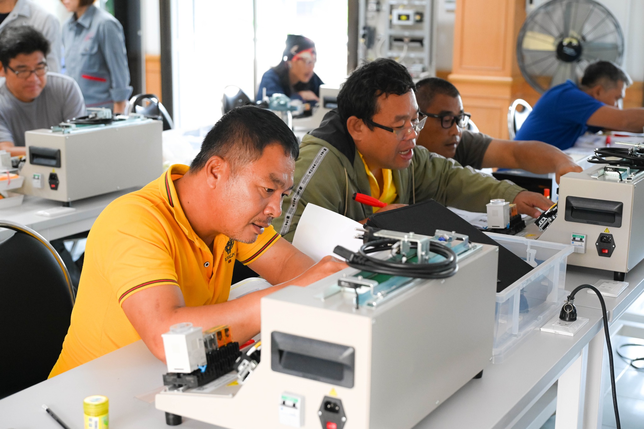 การอบรมและพัฒนาทักษะฝีมือ หลักสูตรการประกอบและวายริ่งตู้ควบคุมไฟฟ้า 27 พฤศจิกายน 202427 พฤศจิกายน 2024piyanunข่าวประชาสัมพันธ์, ข่าวสำหรับบุคลากร, ข่าวสื่อสารองค์กร จำนวนผู้ชม : 8 การอบรมและพัฒนาทักษะฝีมือ หลักสูตรการประกอบและวายริ่งตู้ควบคุมไฟฟ้า คณะวิศวกรรมศาสตร์และเทคโนโลยีอุตสาหกรรม ร่วมกับศูนย์ฝึกอบรมและทดสอบทักษะอาชีพ และ JFAC TRAINING CENTER จัดอบรมและพัฒนาทักษะฝีมือ หลักสูตรการประกอบและวายริ่งตู้ควบคุมไฟฟ้า (Assembly & Wiring Control Panel) – เทคนิคญี่ปุ่น ให้แก่นักศึกษา บุคลากรและผู้สนใจ เมื่อวันที่ 18 – 20 พฤศจิกายน 2567 ณ อาคาร 8 ชั้น 2 มหาวิทยาลัยราชภัฏเพชรบุรีการฝึกอบรมหลักสูตรการประกอบและวายริ่งตู้ควบคุมไฟฟ้า ประกอบด้วยภาคบรรยายและภาคปฏิบัติ มีการฝึกอบรม พัฒนา ทักษะฝีมือในการประกอบและวายริ่งตู้ควบคุมไฟฟ้า โดยผู้ฝึกจะต้องผ่านการทดสอบเพื่อคัดแยกความสามารถ SKILLS TEST และรับการประเมิน เน้นการฝึกทักษะพื้นฐาน โดยมีการปรับพื้นฐานด้านต่าง ๆ เช่น ทักษะการทำงาน ทักษะการอ่านแบบ ทักษะด้านความปลอดภัย ทักษะฝีมือ ทักษะการใช้งานเครื่องมือ ทักษะการตรวจสอบคุณภาพ ทักษะการวายริ่งระดับสูง และอื่น ๆ โดยมุ่งเน้นการฝึกปฏิบัติเพื่อให้ผู้ฝึกมีความรู้ ความสามารถด้านการออกแบบ ผลิต ประกอบและวายริ่งตู้ควบคุมไฟฟ้า ตลอดจนการนำความรู้ไปประยุกต์ หรือปรับปรุงระบบเดิมที่มีอยู่ให้ดีขึ้นไป Facebook iconFacebookTwitter iconTwitterLINE iconLine