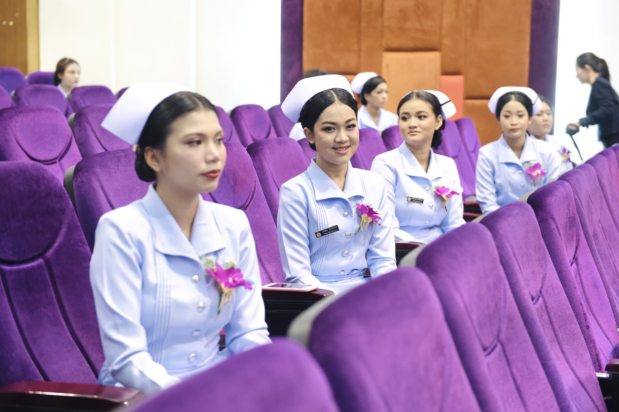 คณะพยาบาลศาสตร์และวิทยาการสุขภาพ จัดพิธีมอบหมวกขีด เข็ม และประกาศนียบัตรสำเร็จการศึกษาผู้ช่วยพยาบาล รุ่นที่ 3 27 พฤศจิกายน 202427 พฤศจิกายน 2024piyanunข่าวประชาสัมพันธ์, ข่าวสำหรับนักศึกษา, ข่าวสำหรับบุคลากร, ข่าวสื่อสารองค์กร จำนวนผู้ชม : 19 คณะพยาบาลศาสตร์และวิทยาการสุขภาพ จัดพิธีมอบหมวกขีด เข็ม และประกาศนียบัตรสำเร็จการศึกษาผู้ช่วยพยาบาล รุ่นที่ 3 วันที่ 27 พฤศจิกายน 2567 ณ ห้องประชุมชั้น 2 คณะพยาบาลศาสตร์และวิทยาการสุขภาพ มหาวิทยาลัยราชภัฏเพชรบุรี ผู้ช่วยศาสตราจารย์ ดร.เสนาะ กลิ่นงาม อธิการบดีมหาวิทยาลัยราชภัฏเพชรบุรี เป็นประธานในพิธีมอบหมวกขีด เข็ม และประกาศนียบัตรสำเร็จการศึกษาผู้ช่วยพยาบาล รุ่นที่ 3โดยมีผู้ช่วยศาสตราจารย์ เรือเอกหญิง ดร.สุพัตรา นุตรักษ์ คณบดีคณะพยาบาลศาสตร์และวิทยาการสุขภาพ ผู้ช่วยศาสตราจารย์จิตรรดา พงศธราธิก ประธานหลักสูตรประกาศนียบัตรผู้ช่วยพยาบาล คณาจารย์ บุคลากรและผู้ปกครองร่วมแสดงความยินดีผู้ช่วยศาสตราจารย์ เรือเอกหญิง ดร.สุพัตรา นุตรักษ์ คณบดีคณะพยาบาลศาสตร์และวิทยาการสุขภาพ กล่าวว่า “คณะพยาบาลศาสตร์และวิทยาการสุขภาพ ได้เปิดให้มีการจัดการเรียนการสอนหลักสูตรประกาศนียบัตรผู้ช่วยพยาบาลเป็นรุ่นที่ 3 ในปีการศึกษา 2566 เพื่อตอบสนองความต้องการบุคลากรด้านสุขภาพ และเป็นการผลิตบุคลากรทางด้านสุขภาพให้กับประเทศ การสร้างอัตลักษณ์ ค่านิยมและสร้างความโดดเด่นของวิชาชีพ ให้มีความพร้อมในการทำงานด้านวิชาการ ทักษะปฏิบัติการช่วยเหลือดูแลผู้ป่วยผู้ที่อยู่ในภาวะพึ่งพิงให้แก่นักศึกษากิจกรรมภายในงานประกอบด้วย พิธีมอบหมวกขีด เข็ม และพิธีมอบใบประกาศนียบัตร โดยมีนักศึกษาสำเร็จการศึกษาตามหลักสูตร ประจำปีการศึกษา 2566 จำนวน 17 คน Facebook iconFacebookTwitter iconTwitterLINE iconLine