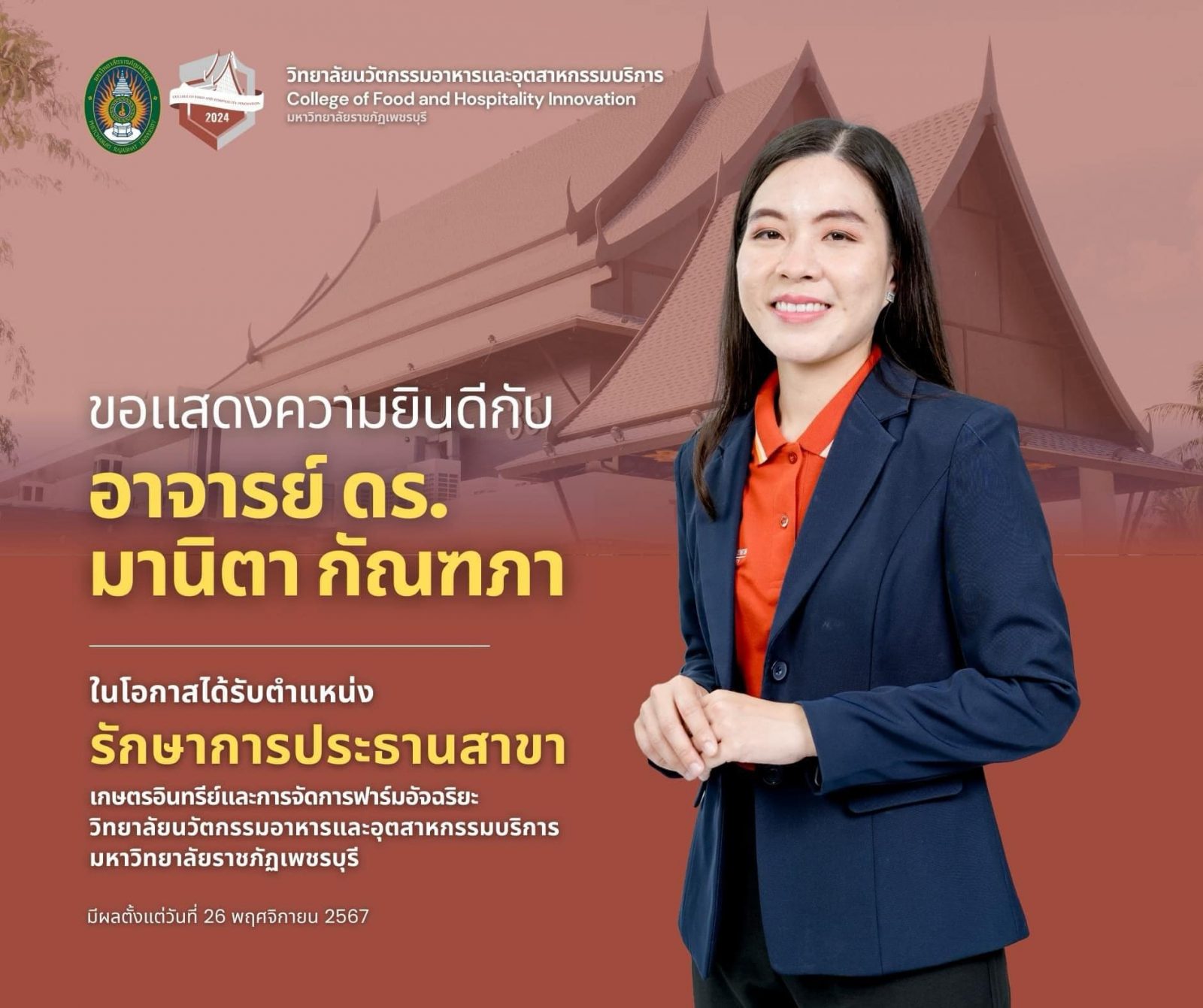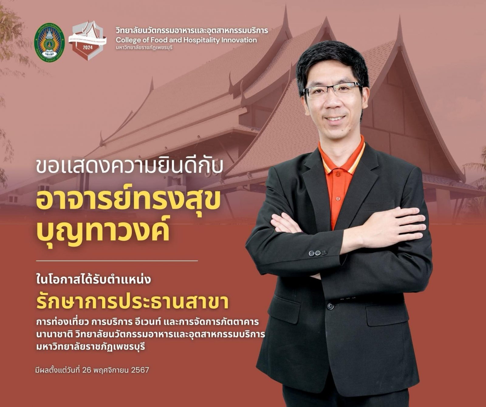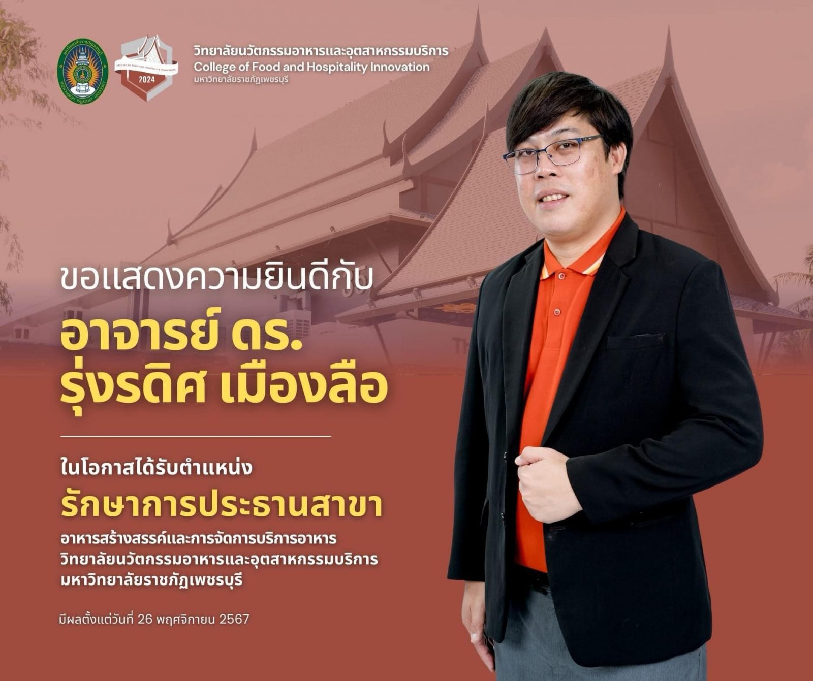 ขอแสดงความยินดีกับคณาจารย์วิทยาลัยนวัตกรรมอาหารและอุตสาหกรรมบริการ 6 ธันวาคม 20246 ธันวาคม 2024piyanunข่าวประชาสัมพันธ์, ข่าวสำหรับบุคลากร, ข่าวสื่อสารองค์กร จำนวนผู้ชม : 43 ขอแสดงความยินดีกับคณาจารย์วิทยาลัยนวัตกรรมอาหารและอุตสาหกรรมบริการ ในโอกาสได้รับตำแหน่งประธานสาขาและรักษาการประธานสาขา จำนวน 4 สาขาวิชา ติดตามความเคลื่อนไหวของมหาวิทยาลัยราชภัฏเพชรบุรีได้ที่Website: www.pbru.ac.thFacebook: มหาวิทยาลัยราชภัฏเพชรบุรี งานสื่อสารองค์กร https://www.facebook.com/prpbruYoutube: (Pbru Channel) https://www.youtube.com/@PBRUChannelTikTok: (pbruofficial) https://www.tiktok.com/@pbruofficial?_t=8rsFgH6g8fA&_r=1IG: (pbru_official) https://www.instagram.com/pbru_official?igsh=MWsweGN2YXc4em5oOA==Twitter: (pbruofficial) https://x.com/pbruofficial?s=21 Facebook iconFacebookTwitter iconTwitterLINE iconLine
