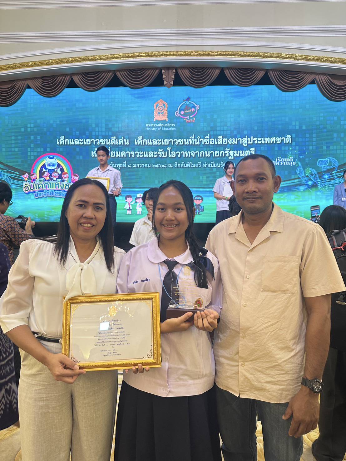 ขอแสดงความยินดีกับนักเรียนโรงเรียนสาธิตมหาวิทยาลัยราชภัฏเพชรบุรี 13 มกราคม 202513 มกราคม 2025piyanunข่าวประชาสัมพันธ์, ข่าวประชาสัมพันธ์โรงเรียนสาธิตฯ, ข่าวสำหรับบุคลากร, ข่าวสื่อสารองค์กร จำนวนผู้ชม : 28 ขอแสดงความยินดีกับนักเรียนโรงเรียนสาธิตมหาวิทยาลัยราชภัฏเพชรบุรี 8 ม.ค. 68 “ขอแสดงความยินดีกับนักเรียนโรงเรียนสาธิตมหาวิทยาลัยราชภัฏเพชรบุรี” โดยกระทรวงศึกษาธิการ นำเด็กและเยาวชนดีเด่น เด็กและเยาวชนที่นำชื่อเสียงมาสู่ประเทศชาติที่มีผลงานโดดเด่น เข้าเยี่ยมคารวะรับโอวาทจากนายกรัฐมนตรี “นางสาวแพทองธาร ชินวัตร” และรับโล่เกียรติคุณจากรัฐมนตรีว่าการกระทรวงศึกษาธิการ “พลตำรวจเอก เพิ่มพูน ชิดชอบ” ณ ตึกสันติไมตรี ทำเนียบรัฐบาล นักเรียนโรงเรียนสาธิตมหาวิทยาลัยราชภัฏเพชรบุรีที่ได้รับโล่เกียรติคุณ ได้แก่ เด็กหญิงภัณฑิรา พรมเวียง ชั้น ม.2/3 Facebook iconFacebookTwitter iconTwitterLINE iconLine
