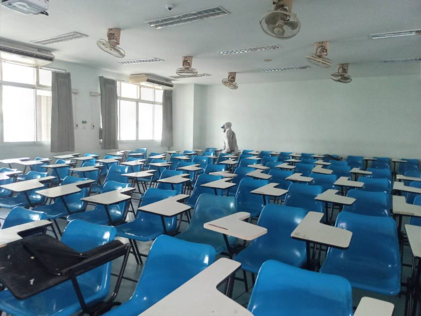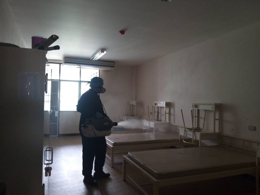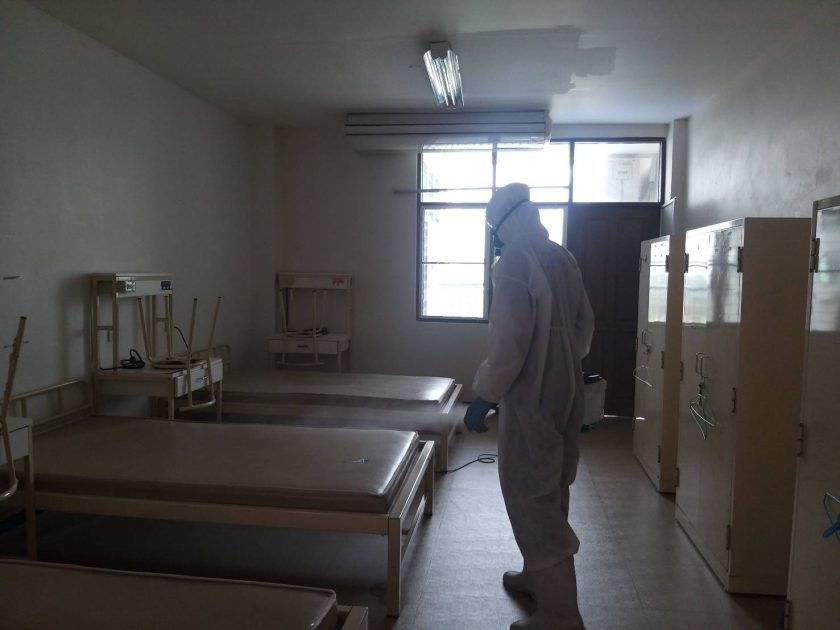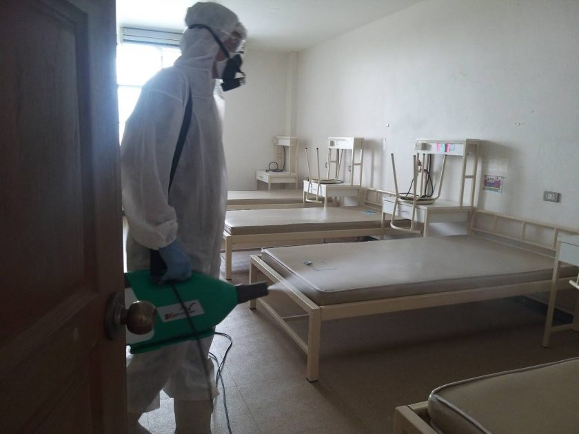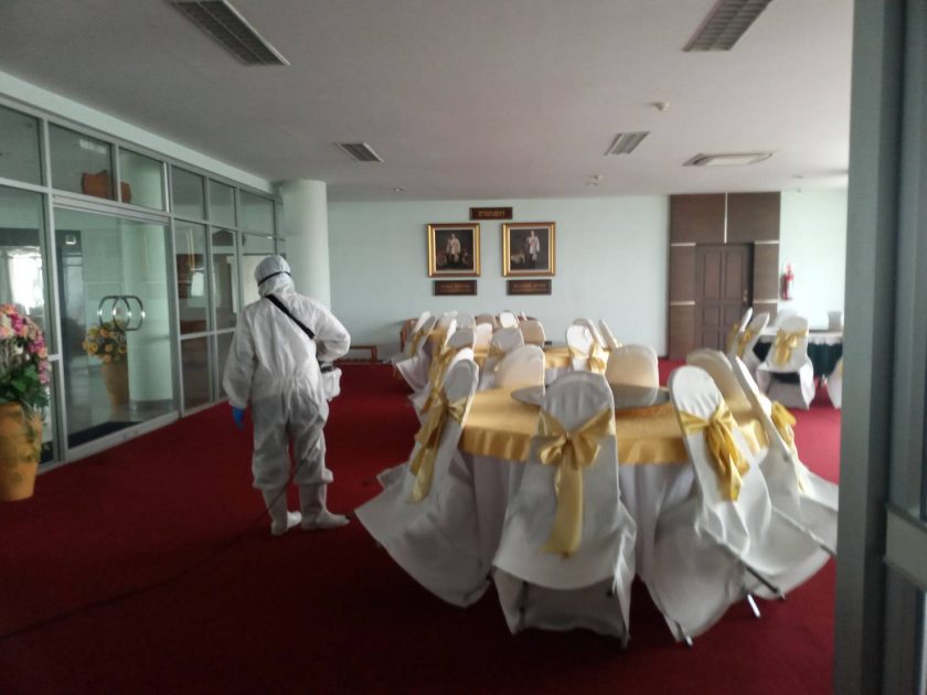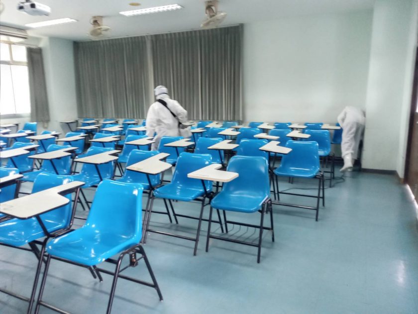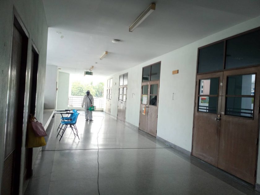 มหาวิทยาลัยราชภัฏเพชรบุรีเดินหน้าสร้างความปลอดภัย พ่นยาฆ่าเชื้อโควิดในอาคารและหอพัก