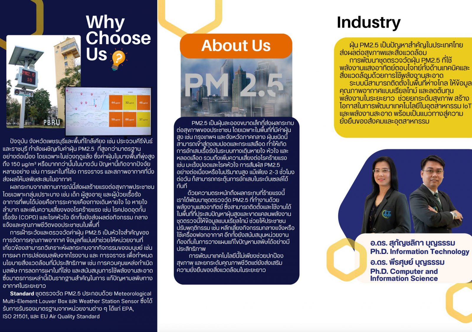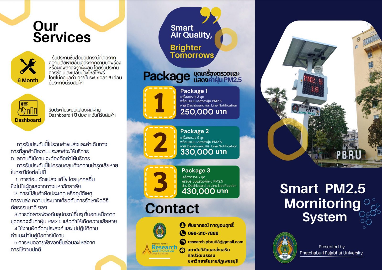 ชุดเครื่องตรวจและแสดงค่าฝุ่น PM 2.5 24 มกราคม 202524 มกราคม 2025piyanunข่าวประชาสัมพันธ์, ข่าวสำหรับบุคลากร, ข่าวสื่อสารองค์กร จำนวนผู้ชม : 46 ช่วงนี้หลายพื้นที่พบกับฝุ่นละอองเกินค่ามาตรฐาน (ค่าปกติอยู่ที่ไม่เกิน 25 ไมโครกรัมต่อลูกบาศก์เมตรใน 24 ชั่วโมง)สถาบันวิจัยและส่งเสริมศิลปวัฒนธรรม ร่วมกับนักวิจัยมหาวิทยาลัยราชภัฏเพชรบุรีคิดค้นนวัตกรรม “ชุดเครื่องตรวจและแสดงค่าฝุ่น PM 2.5” ที่ได้รับการรับรองมาตรฐานจากหน่วยงานต่าง ๆ และได้มีการติดตั้งใช้งานภายในมหาวิทยาลัย จำนวน 5 จุด พบว่าสามารถแจ้งค่าได้อย่างแม่นยำและมีประสิทธิภาพท่านที่สนใจสามารถติดต่อได้ที่ 09 8310 7888 (คุณพิชชาภรณ์) ติดตามความเคลื่อนไหวของมหาวิทยาลัยราชภัฏเพชรบุรีได้ที่Website: www.pbru.ac.thFacebook: มหาวิทยาลัยราชภัฏเพชรบุรี งานสื่อสารองค์กร https://www.facebook.com/prpbruYoutube: (Pbru Channel) https://www.youtube.com/@PBRUChannelTikTok: (pbruofficial) https://www.tiktok.com/@pbruofficial?_t=8rsFgH6g8fA&_r=1IG: (pbru_official) https://www.instagram.com/pbru_official?igsh=MWsweGN2YXc4em5oOA==Twitter: (pbruofficial) https://x.com/pbruofficial?s=21Tel: 0 3270 8612 (กลุ่มงานสื่อสารองค์กร) Facebook iconFacebookTwitter iconTwitterLINE iconLine