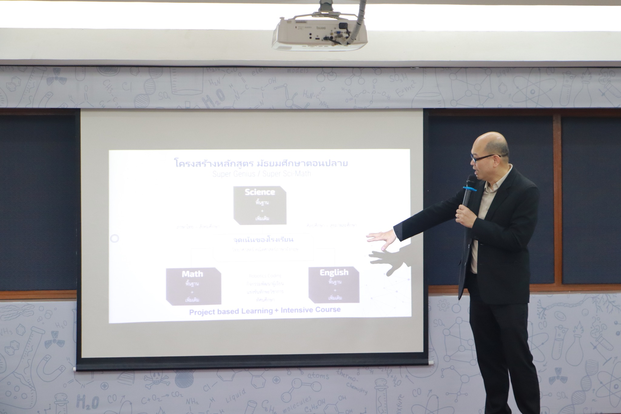 – นโยบายและทิศทางการบริหารงานของโรงเรียน และหลักสูตรการศึกษาและแนวทางการเลือกห้องเรียนชั้นมัธยมศึกษาปีที่ 4 ตามศักยภาพของผู้เรียนรายบุคคล โดย อาจารย์ ดร.สรรเสริญ เลาหสถิตย์ (ผู้อำนวยการโรงเรียน)