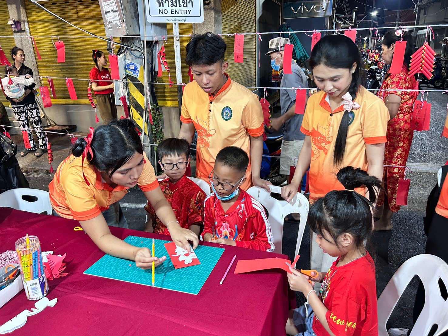 สาขาวิชาภาษาจีนเข้าร่วมกิจกรรมประเพณีตรุษจีน ประจำปี 2568 30 มกราคม 202530 มกราคม 2025piyanunข่าวประชาสัมพันธ์, ข่าวสำหรับนักศึกษา, ข่าวสำหรับบุคลากร, ข่าวสื่อสารองค์กร จำนวนผู้ชม : 33 สาขาวิชาภาษาจีนเข้าร่วมกิจกรรมประเพณีตรุษจีน ประจำปี 2568 ผู้ช่วยศาสตราจารย์ ดร.เสนาะ กลิ่นงาม อธิการบดีมหาวิทยาลัยราชภัฏเพชรบุรี มอบหมายให้คณาจารย์และนักศึกษาสาขาวิชาภาษาจีน คณะมนุษยศาสตร์และสังคมศาสตร์ เข้าร่วมกิจกรรมประเพณีตรุษจีน ที่เทศบาลเมืองเพชรบุรีร่วมกับสหสมาคม-มูลนิธิชาวจีนเพชรบุรี 7 คณะ จัดขึ้น ระหว่างวันที่ 28 มกราคม – 2 กุมภาพันธ์ 2568 ณ บริเวณถนนสุรินทรฦๅชัย อำเภอเมืองเพชรบุรี จังหวัดเพชรบุรีโดยนักศึกษาได้นำกิจกรรมศิลปวัฒนธรรมจีน ได้แก่ ชงชา ถักเชือก และตัดกระดาษ ให้แก่บุคคลที่สนใจได้เข้าร่วม นอกจากนี้ยังได้จัดนิทรรศการและการให้ความรู้ทางศิลปวัฒนธรรมจีน Facebook iconFacebookTwitter iconTwitterLINE iconLine