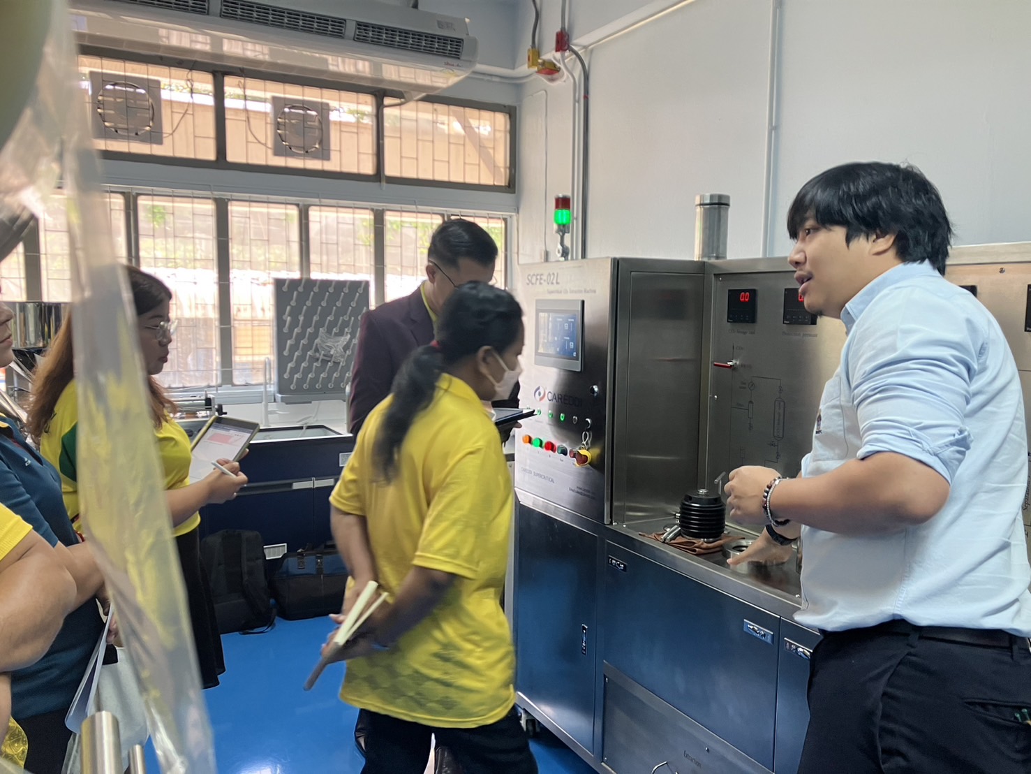 คณะวิทยาศาสตร์และเทคโนโลยี เข้าร่วมอบรมการใช้เครื่องมือสกัดน้ำมัน Supercritical CO2 Extraction Machine 7 กุมภาพันธ์ 20257 กุมภาพันธ์ 2025piyanunข่าวประชาสัมพันธ์, ข่าวสำหรับบุคลากร, ข่าวสื่อสารองค์กร จำนวนผู้ชม : 10 คณะวิทยาศาสตร์และเทคโนโลยี เข้าร่วมอบรมการใช้เครื่องมือสกัดน้ำมัน Supercritical CO2 Extraction Machine คณาจารย์และนักวิทยาศาสตร์สาขาวิชาชีววิทยาและสาขาวิชาเคมี คณะวิทยาศาสตร์และเทคโนโลยี เข้ารับการอบรมการใช้เครื่องมือสกัดน้ำมัน Supercritical CO2 Extraction Machine ที่บริษัท เอ็ดดูเคชั่น ออโตเมชั่น ซิสเต็ม จำกัด (EAT) ได้จัดขึ้นเมื่อวันที่ 31 มกราคม ที่ผ่านมา ณ ห้องปฏิบัติการสกัดและตรวจวิเคราะห์สารสำคัญจากพืช Extraction and Analysis of Phytochemicals Laboratory ชั้น 1 อาคารศูนย์วิทยาศาสตร์วิทยาศาสตร์ประยุกต์ มหาวิทยาลัยราชภัฏเพชรบุรีการอบรมในครั้งนี้ได้มีการชี้แจงเกี่ยวกับขั้นตอนการใช้งานเครื่องมือ ตลอดจนการเลือกตัวอย่างพืช การปรับค่าต่าง ๆ ของเครื่องมือ ระยะเวลา ต้นทุนการใช้งาน การเก็บผลผลิต รวมถึงการแก้ปัญหาระหว่างการทดสอบ เพื่อให้การทดสอบเหมาะสม ส่งผลให้ได้น้ำมันจากตัวอย่างพืชที่ที่มีประสิทธิภาพ สามารถนำไปใช้ศึกษา ทดสอบ ทดลอง ในการเรียนการสอน การวิจัยต่อไป Facebook iconFacebookTwitter iconTwitterLINE iconLine