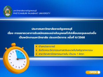 ประกาศมหาวิทยาลัยราชภัฏเพชรบุรี เรื่อง ผลการสอบแข่งขันบ […]