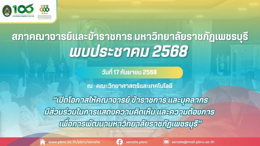 สภาคณาจารย์และข้าราชการ มหาวิทยาลัยราชภัฏเพชรบุรี จัดกิจกรรม “พบประชาคม 2568” วันที่ 15 กันยายน 2568 Read More » 16 กันยายน 2025 15:00 น.