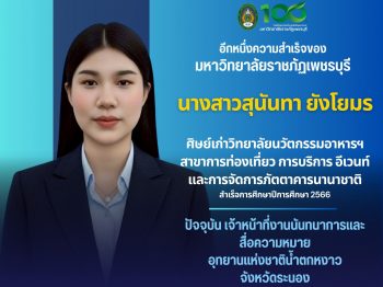 อีกหนึ่งความสำเร็จของมหาวิทยาลัยราชภัฏเพชรบุรี นางสาวสุนันทา ยังโยมร ศิษย์เก่าวิทยาลัยนวัตกรรมอาหารและอุตสาหกรรมบริการ สาขาการท่องเที่ยว การบริการ อีเวนท์ และการจัดการภัตตาคารนานาชาติ