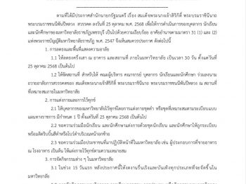 คำสั่งมหาวิทยาลัยราชภัฏเพชรบุรี ที่ 1687/2568 เรื่อง แต […]