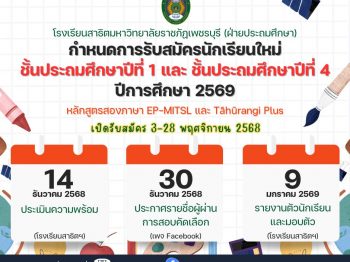 กำหนดการรับสมัครนักเรียนโรงเรียนสาธิตมหาวิทยาลัยราชภัฏเ […]