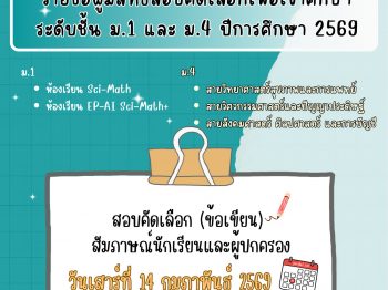 ประกาศ…รายชื่อผู้มีสิทธิ์สอบคัดเลือกเข้าเป็นนักเรียนโรงเรียนสาธิตมหาวิทยาลัยราชภัฏเพชรบุรีชั้นมัธยมศึกษาปีที่ 1 และชั้นมัธยมศึกษาปีที่ 4 ปีการศึกษา 2569
