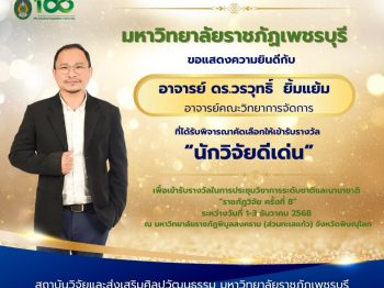 ขอแสดงความยินดีกับ อาจารย์ประจำคณะวิทยาการจัดการได้รับการพิจารณาคัดเลือกเข้ารับรางวัล “นักวิจัยดีเด่น”