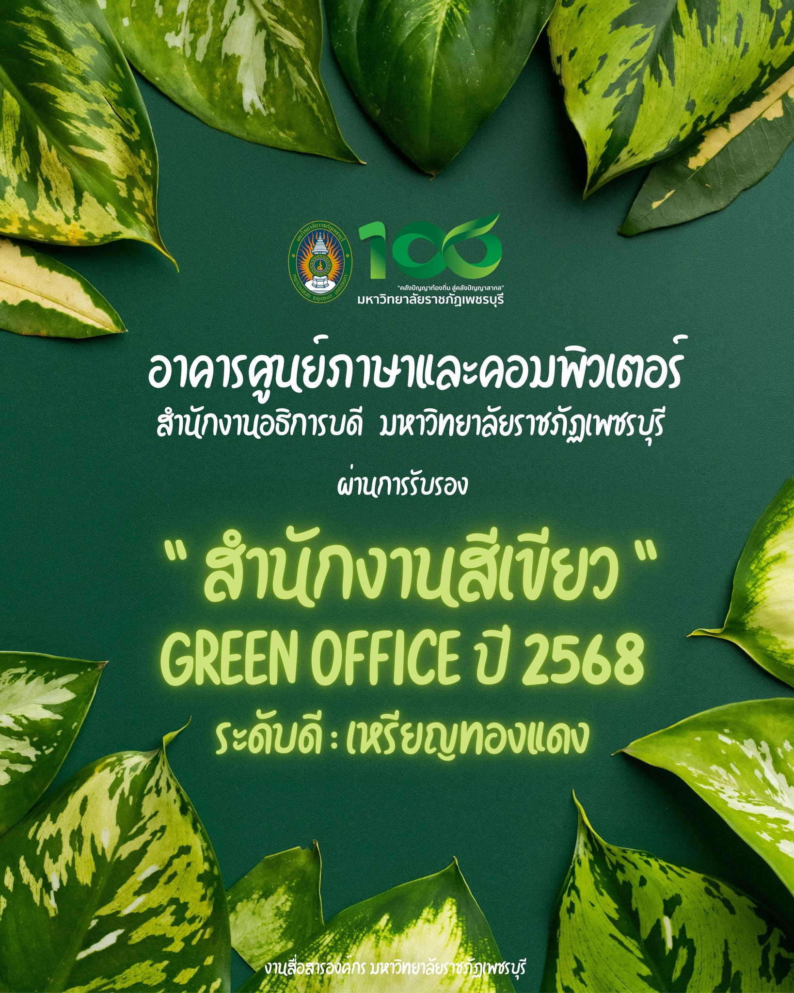 อาคารศูนย์ภาษาและคอมพิวเตอร์ สำนักงานอธิการบดี มหาวิทยาลัยราชภัฏเพชรบุรีผ่านการรับรองสำนักงานสีเขียว