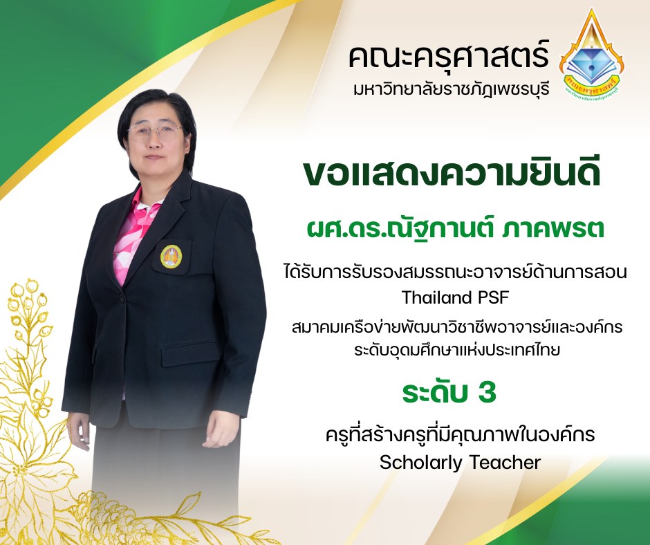 ขอแสดงความยินดีกับ ผศ.ดร.วัชราภรณ์ ประภาสะโนบล อาจารย์ผู้สอนประจำสาขาวิชาเคมี คณะวิทยาศาสตร์และเทคโนโลยี