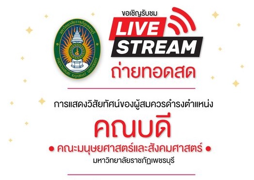 ขอเชิญรับชม การถ่ายทอดสด การแสดงวิสัยทัศน์ของผู้สมควรดำรงตำแหน่งคณบดีคณะมนุษยศาสตร์และสังคมศาสตร์