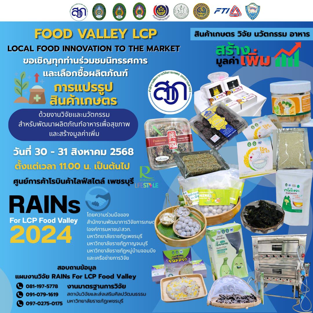ขอเชิญชวนทุกท่านเข้าร่วมงาน FOOD VALLEY LCP – Local Food Innovation to the Market กิจกรรมภายใต้แผนงานวิจัย RAINs for LCP Food Valley 2024