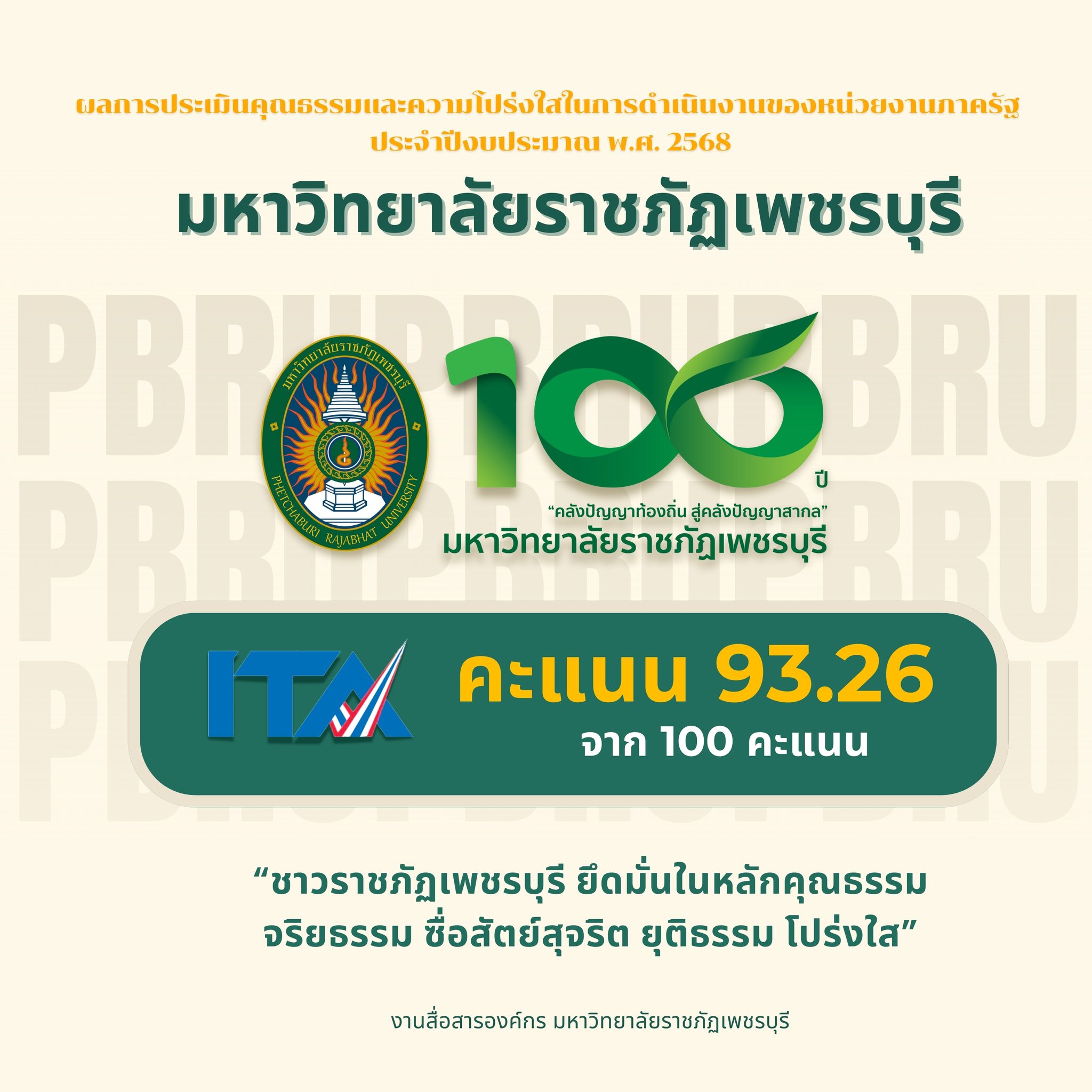 ผลการประเมินคุณธรรมและความโปร่งใสในการดำเนินงานของหน่วยงานภาครัฐ ประจำปีงบประมาณ พ.ศ. 2568 ของมหาวิทยาลัยราชภัฏเพชรบุรี