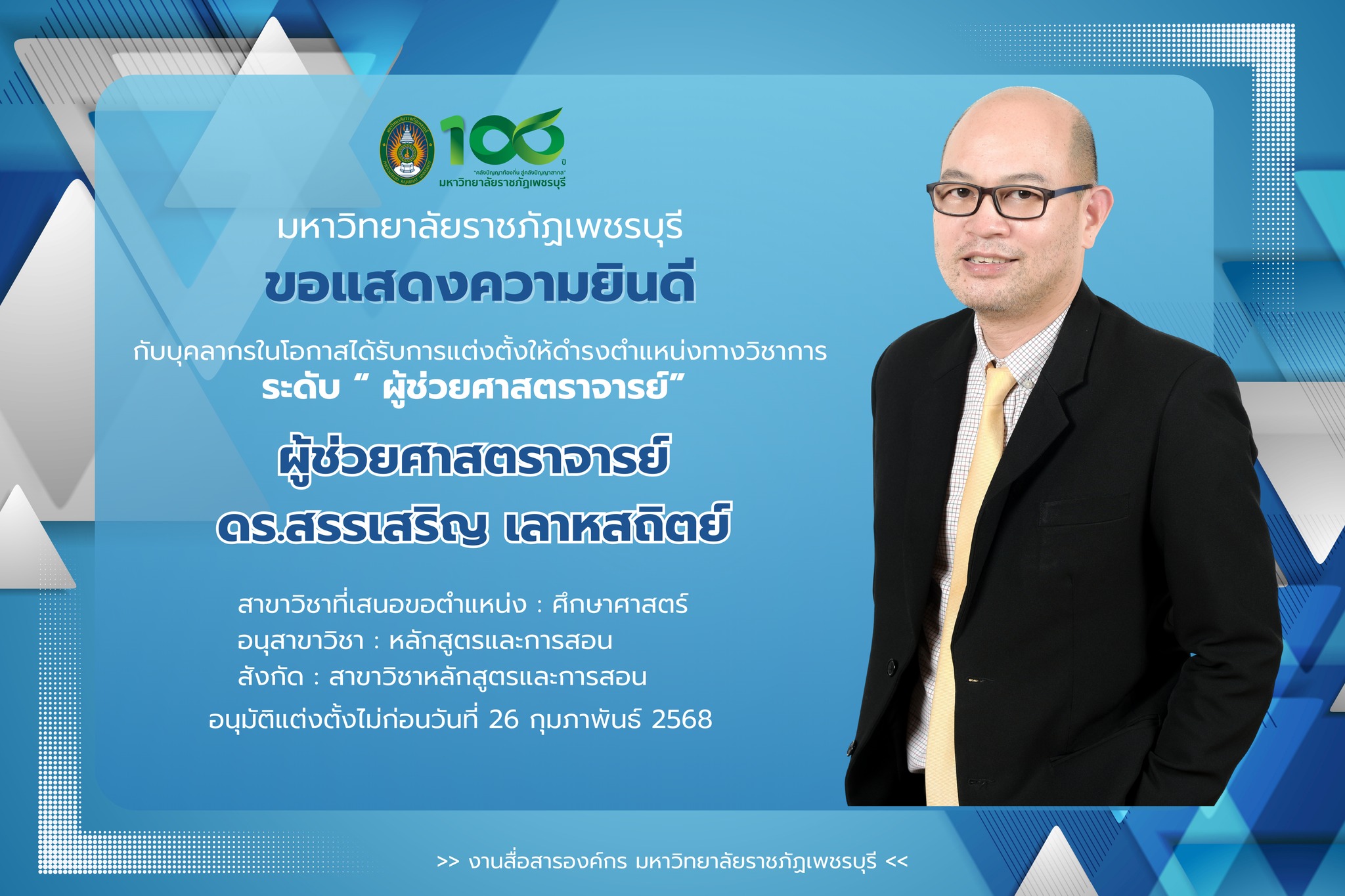 ขอแสดงความยินดีกับบุคลากรในโอกาสได้รับการแต่งตั้งให้ดำรงตำแหน่งทางวิชาการระดับ “ ผู้ช่วยศาสตราจารย์ ”