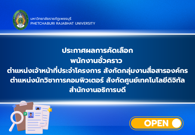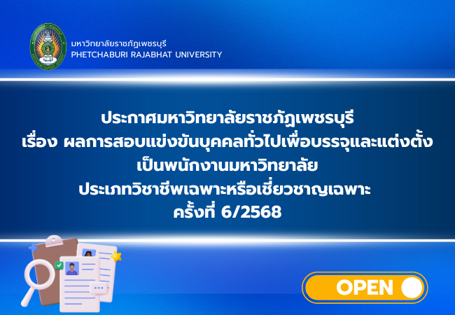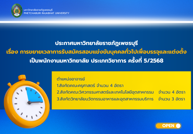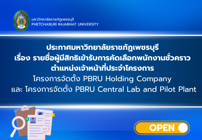 ข่าวรับสมัครงาน ข่าวรับสมัครงาน ทั้งหมด All ประกาศผลสอบ ประกาศรับสมัคร ประกาศรายชื่อผู้มีสิทธิ์สอบ ประกาศมหาวิทยาลัยราชภัฏเพชรบุรี เรื่อง การขยายเวลาการรับสมัครสอบแข่งขันบุคคลทั่วไปเพื่อบรรจุและแต่งตั้ง เป็นพนักงานมหาวิทยาลัย ประเภทวิชาการ ครั้งที่ 5/2568 9 มกราคม 2026 ประกาศมหาวิทยาลัยราชภัฏเพชรบุรี เรื่อง รับสมัครสอบแข่งขันบุคคลทั่วไปเพื่อบรรจุและแต่งตั้งเป็นพนักงานมหาวิทยาลัย ประเภททั่วไป ครั้งที่ 1/2569 7 มกราคม 2026 ประกาศผลการคัดเลือก พนักงานชั่วคราว ตำแหน่งเจ้าหน้าที่ประจำโครงการ สังกัดกลุ่มงานสื่อสารองค์กร ตำแหน่งนักวิชาการคอมพิวเตอร์ สังกัดศูนย์เทคโนโลยีดิจิทัล 30 ธันวาคม 2025 ประกาศผลการคัดเลือกพนักงานชั่วคราว ตำแหน่งเจ้าหน้าที่ประจำโครงการ โครงการจัดตั้ง PBRU Holding Company และ โครงการจัดตั้ง PBRU Central Lab and Pilot Plant 30 ธันวาคม 2025 ประกาศมหาวิทยาลัยราชภัฏเพชรบุรี เรื่อง ผลการสอบแข่งขันบุคคลทั่วไปเพื่อบรรจุและแต่งตั้งเป็นพนักงานมหาวิทยาลัย ประเภทวิชาชีพเฉพาะหรือเชี่ยวชาญเฉพาะ ครั้งที่ 6/2568 29 ธันวาคม 2025 ประกาศมหาวิทยาลัยราชภัฏเพชรบุรี เรื่องรายชื่อผู้มีสิทธิเข้ารับการคัดเลือกพนักงานชั่วคราว ตำแหน่งเจ้าหน้าที่ประจำโครงการ โครงการจัดตั้ง PBRU Holdingและ โครงการจัดตั้ง PBRU Central Lab and Pilot Plant Company 26 ธันวาคม 2025 « Previous 1 2 3 4 5 6 7 8 9 10 11 12 13 14 15 16 17 18 19 20 21 22 23 24 25 26 27 28 29 30 31 32 33 34 35 36 37 38 39 40 41 42 43 44 45 46 47 48 49 50 51 52 53 54 55 56 57 58 59 60 61 62 63 64 65 66 67 68 69 70 71 72 73 74 75 76 77 78 79 80 81 82 83 84 85 86 87 88 89 90 91 92 93 94 95 96 97 98 99 100 101 102 103 104 105 106 107 108 109 110 111 112 113 114 115 116 117 118 119 120 121 122 123 124 125 126 127 128 129 130 Next »