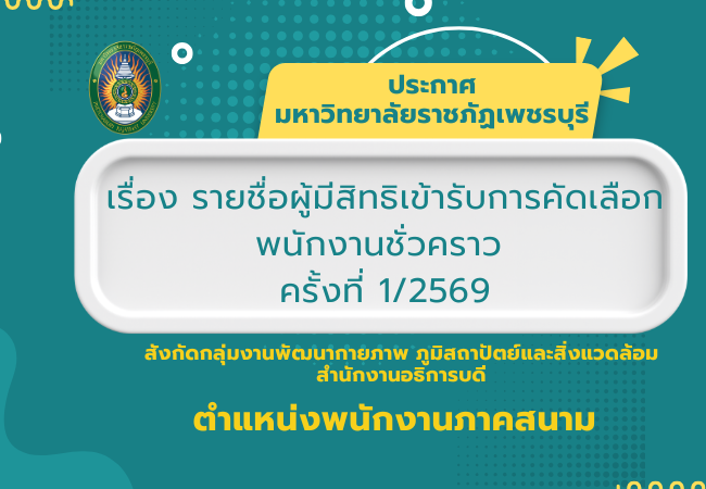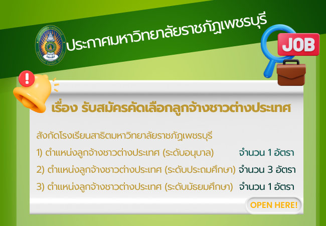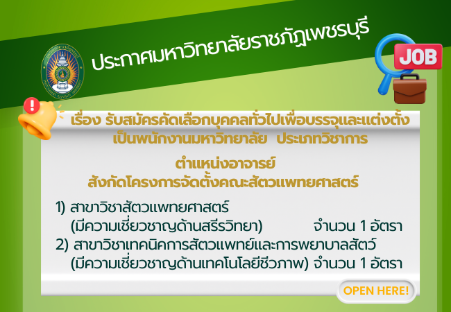 ข่าวรับสมัครงาน ข่าวรับสมัครงาน ทั้งหมด All ประกาศผลสอบ ประกาศรับสมัคร ประกาศรายชื่อผู้มีสิทธิ์สอบ ประกาศมหาวิทยาลัยราชภัฏเพชรบุรี เรื่อง ผลการคัดเลือกบุคคลทั่วไปเพื่อบรรจุและแต่งตั้งเป็นพนักงานมหาวิทยาลัย ประเภทวิชาชีพเฉพาะหรือเชี่ยวชาญเฉพาะ 13 มีนาคม 2026 ประกาศมหาวิทยาลัยราชภัฏเพชรบุรี เรื่อง รายชื่อผู้สอบผ่านการคัดเลือกเพื่อบรรจุแต่งตั้งเป็นพนักงานราชการทั่วไป สังกัดโครงการจัดตั้งคณะสัตวแพทยศาสตร์ มหาวิทยาลัยราชภัฏเพชรบุรี ตำแหน่งนักวิชาการพัสดุ 13 มีนาคม 2026 ประกาศมหาวิทยาลัยราชภัฏเพชรบุรี เรื่อง รายชื่อผู้มีสิทธิเข้ารับการคัดเลือกพนักงานชั่วคราว ครั้งที่ 1/2569 สังกัดกลุ่มงานพัฒนากายภาพ ภูมิสถาปัตย์และสิ่งแวดล้อม สำนักงานอธิการบดี ตำแหน่งพนักงานภาคสนาม 12 มีนาคม 2026 ประกาศมหาวิทยาลัยราชภัฏเพชรบุรี เรื่อง รับสมัครคัดเลือกบุคคลทั่วไปเพื่อบรรจุและแต่งตั้งเป็นพนักงานมหาวิทยาลัย ประเภทวิชาการ สังกัดโครงการจัดตั้งคณะสัตวแพทยศาสตร์ มหาวิทยาลัยราชภัฏเพชรบุรี 9 มีนาคม 2026 ประกาศมหาวิทยาลัยราชภัฏเพชรบุรี เรื่อง รับสมัครคัดเลือกลูกจ้างชาวต่างประเทศ สังกัดโรงเรียนสาธิตมหาวิทยาลัยราชภัฏเพชรบุรี 9 มีนาคม 2026 Phetchaburi Rajabhat University Announcement Subject: Recruitment for Foreign Employees 9 มีนาคม 2026 « Previous 1 2 3 4 5 6 7 8 9 10 11 12 13 14 15 16 17 18 19 20 21 22 23 24 25 26 27 28 29 30 31 32 33 34 35 36 37 38 39 40 41 42 43 44 45 46 47 48 49 50 51 52 53 54 55 56 57 58 59 60 61 62 63 64 65 66 67 68 69 70 71 72 73 74 75 76 77 78 79 80 81 82 83 84 85 86 87 88 89 90 91 92 93 94 95 96 97 98 99 100 101 102 103 104 105 106 107 108 109 110 111 112 113 114 115 116 117 118 119 120 121 122 123 124 125 126 127 128 129 130 131 132 133 134 135 136 Next »