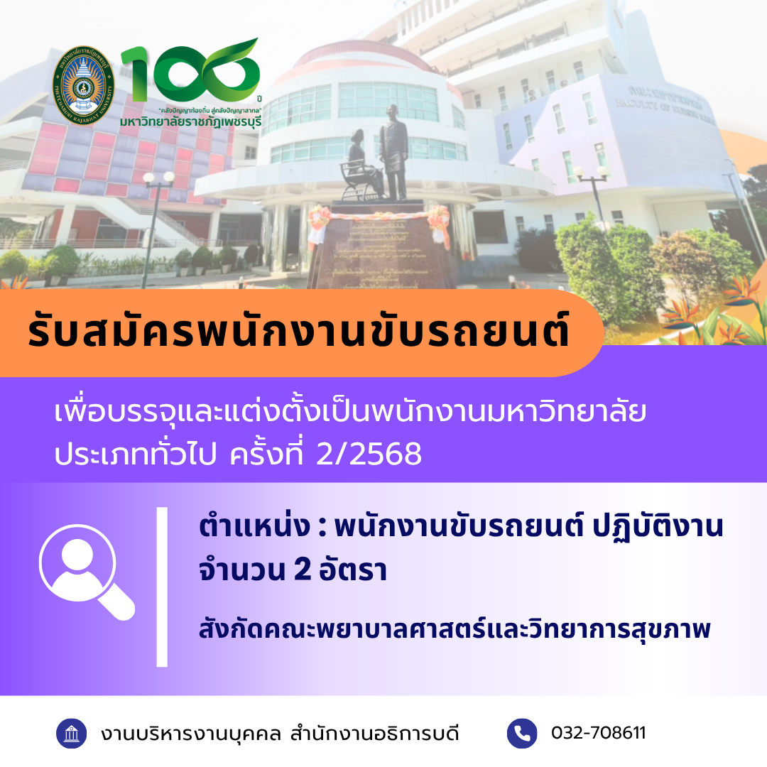 ข่าวรับสมัครงาน ข่าวรับสมัครงาน ทั้งหมด All ประกาศผลสอบ ประกาศรับสมัคร ประกาศรายชื่อผู้มีสิทธิ์สอบ ผลการคัดเลือกบุคคลทั่วไปเพื่อบรรจุและแต่งตั้งเป็นพนักงานมหาวิทยาลัย ประเภทวิชาการ สาขาวิชาสัตวแพทยศาสตร์ โครงการจัดตั้งคณะสัตวแพทยศาสตร์ มหาวิทยาลัยราชภัฏเพชรบุรี 14 พฤศจิกายน 2025 รายชื่อผู้มีสิทธิเข้ารับการคัดเลือกเพื่อบรรจุและแต่งตั้งเป็นพนักงานมหาวิทยาลัย ประเภทวิชาการ สาขาวิชาสัตวแพทยศาสตร์ โครงการจัดตั้งคณะสัตวแพทยศาสตร์ มหาวิทยาลัยราชภัฏเพชรบุรี 12 พฤศจิกายน 2025 ประกาศผลการคัดเลือกพนักงานชั่วคราว ครั้งที่ 12/2568 ตำแหน่งพนักงานประจำหอพัก สังกัดกองพัฒนานักศึกษา สำนักงานอธิการบดี 11 พฤศจิกายน 2025 เปิดรับสมัคร รอบที่ 2 หลักสูตรการแพทย์แผนไทยบัณฑิต คณะพยาบาลศาสตร์และวิทยาการสุขภาพ มหาวิทยาลัยราชภัฏเพชรบุรี 11 พฤศจิกายน 2025 คณะพยาบาลศาสตร์และวิทยาการสุขภาพ มรภ.เพชรบุรี เปิดรับสมัครพนักงานชั่วคราว 4 อัตรา 10 พฤศจิกายน 2025 รับสมัครคัดเลือกบุคคลทั่วไปเพื่อบรรจุและแต่งตั้งเป็นพนักงานมหาวิทยาลัย ประเภททั่วไป ตำแหน่งพนักงานขับรถยน์ สังกัดคณะพยาบาลศาสตร์และวิทยาการสุขภาพ ครั้งที่ 2/2568 10 พฤศจิกายน 2025 « Previous 1 2 3 4 5 6 7 8 9 10 11 12 13 14 15 16 17 18 19 20 21 22 23 24 25 26 27 28 29 30 31 32 33 34 35 36 37 38 39 40 41 42 43 44 45 46 47 48 49 50 51 52 53 54 55 56 57 58 59 60 61 62 63 64 65 66 67 68 69 70 71 72 73 74 75 76 77 78 79 80 81 82 83 84 85 86 87 88 89 90 91 92 93 94 95 96 97 98 99 100 101 102 103 104 105 106 107 108 109 110 111 112 113 114 115 116 117 118 119 120 121 122 123 124 125 126 Next »
