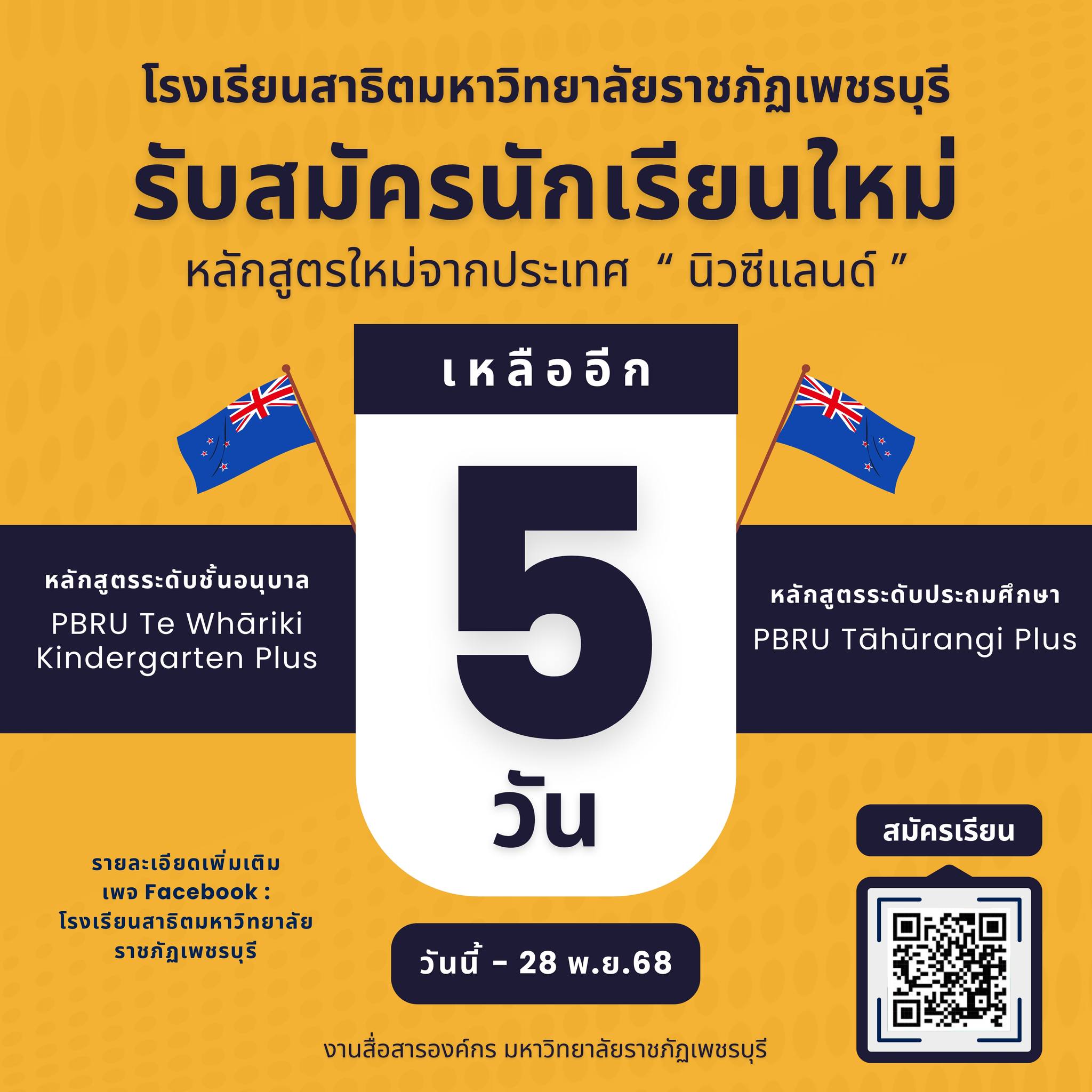 สิ้นสุดการรับสมัครนักเรียนใหม่ ระดับอนุบาล และ ประถมศึกษา โรงเรียนสาธิตมหาวิทยาลัยราชภัฏเพชรบุรี กับ หลักสูตรใหม่ จากประเทศ ” นิวซีแลนด์”