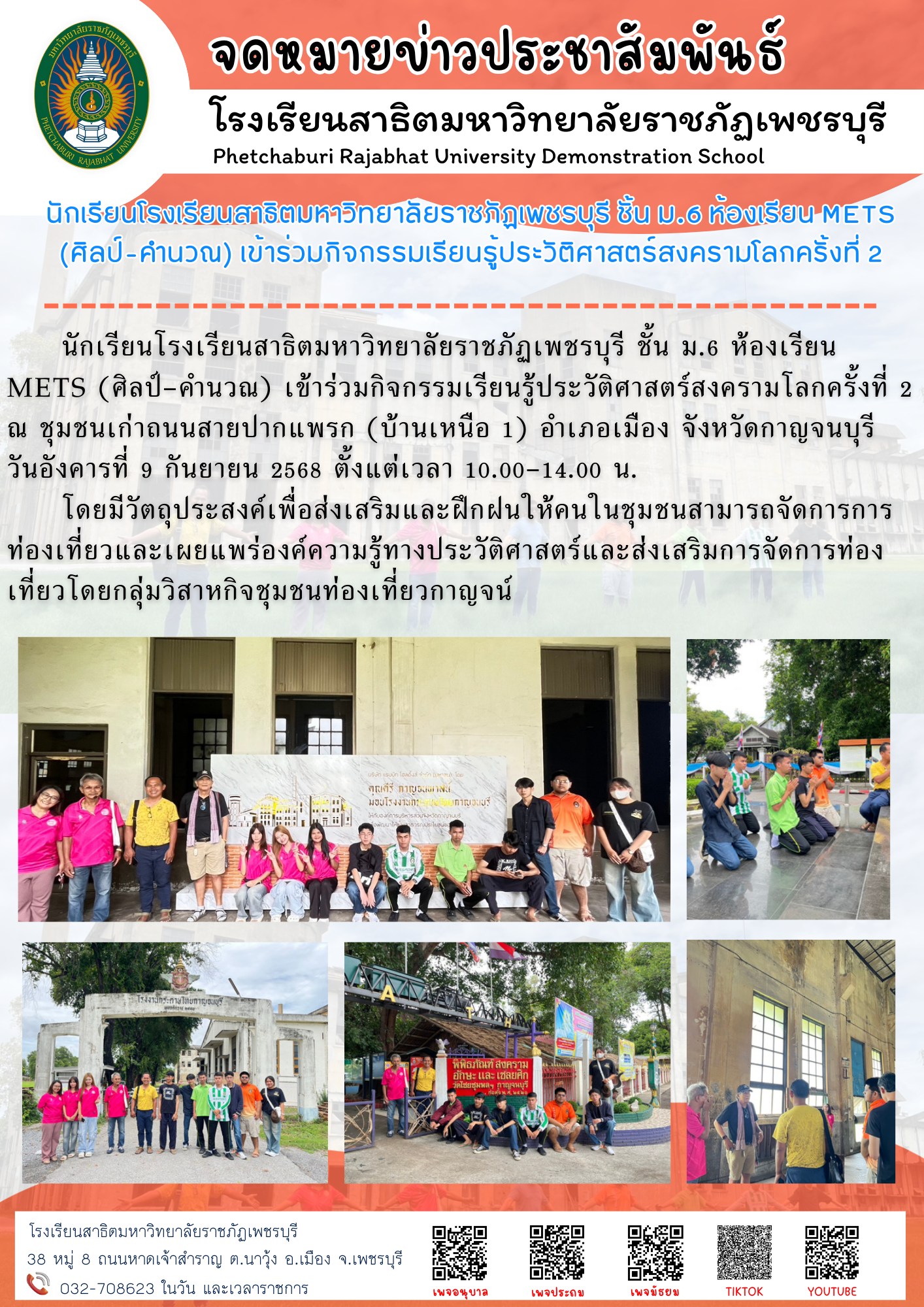 โรงเรียนสาธิตมหาวิทยาลัยราชภัฏเพชรบุรี เข้าร่วมกิจกรรมเรียนรู้ประวัติศาสตร์สงครามโลกครั้ง ที่ 2